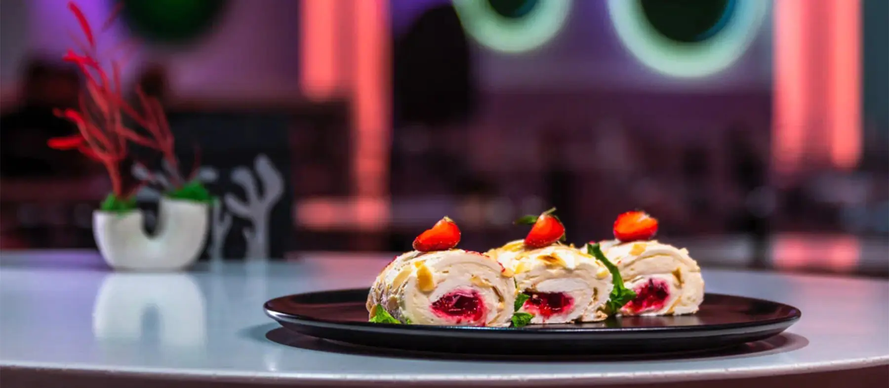 В меню предусмотрены блюда современной авторской кухни, а также пицца, паста, десерты. Юных посетителей ждет множество фруктовых и молочных коктейлей.